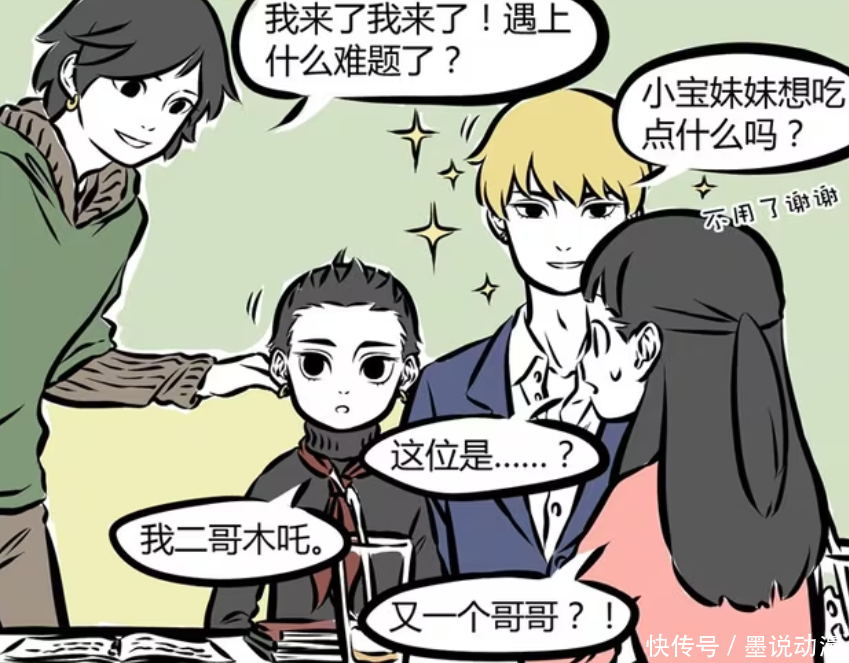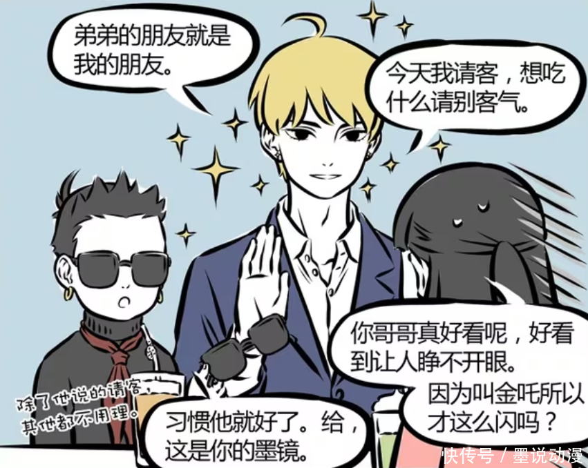 《非东谈主哉》漫画版中,哪吒的哥哥金吒和木吒初登场时,那是让徐小宝有不同样的感受。金吒太过精明,是以需要戴上墨镜。不外金吒存在的风趣,即是请哪吒和徐小宝吃饭。至于功课问题,召唤木吒过来就能解决。
