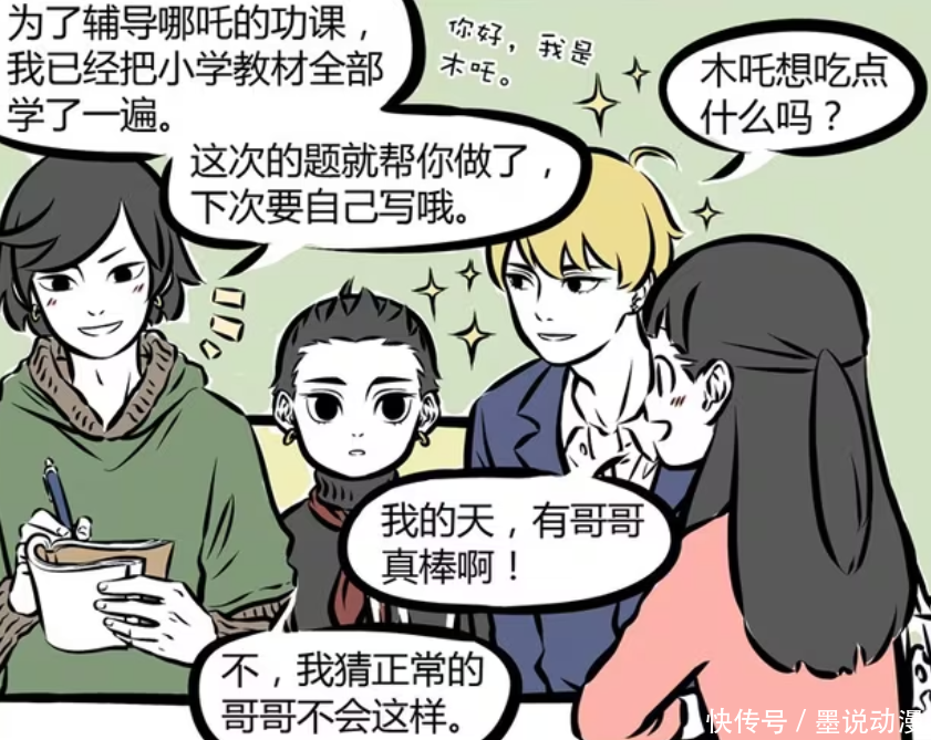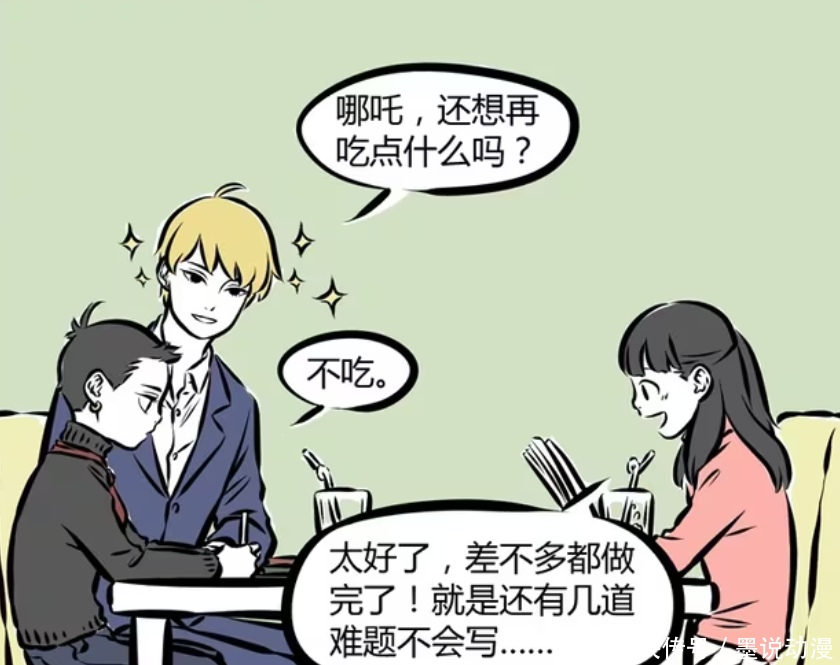 金吒不在乎哪吒功课有莫得写完,只在乎他有莫得什么要吃的东西。哪吒贫瘠这样认真,一直在写功课。徐小宝亦然同样,在不懈勤快之下,只消几谈难题不会写。那么该如何办?