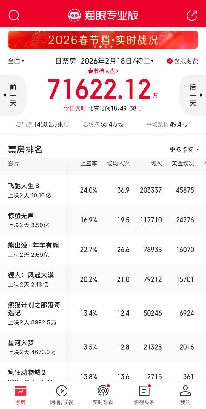 《飞奔东说念主生3》的排片口角常多的,这部电影是全球的首选,若是不出恐怕,这部电影细目是本年的春节档冠军,基本上是板上钉钉的事情了,但是《惊蛰无声》和《镖东说念主:风起大漠》的质料也在线。