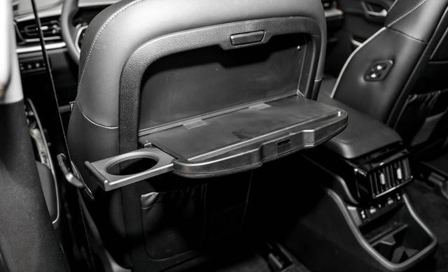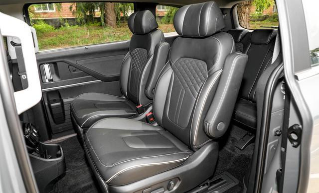 车顶设分段天窗,配手动遮阳板。副驾可调后排,二排有出风口、USB、座椅加热键。前排背后有折叠桌板、抽拉杯架。三排座椅头枕可调,配杯架。高配USB前后共5个,舒服多东谈主充电需求。