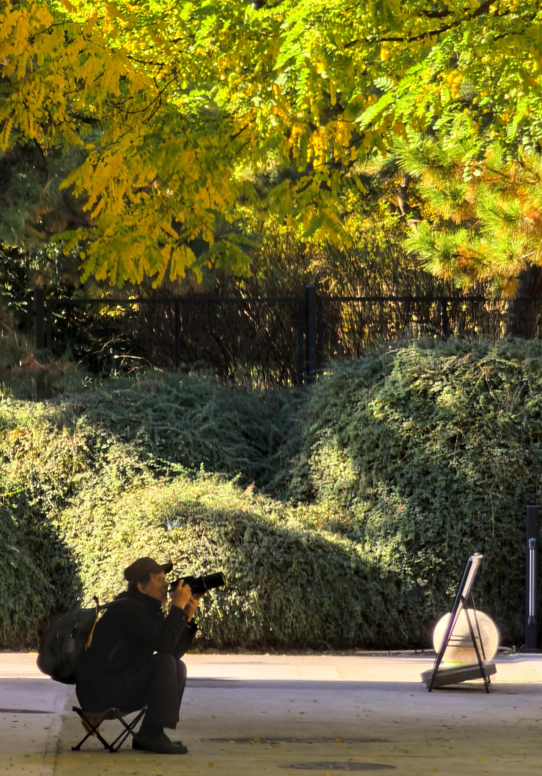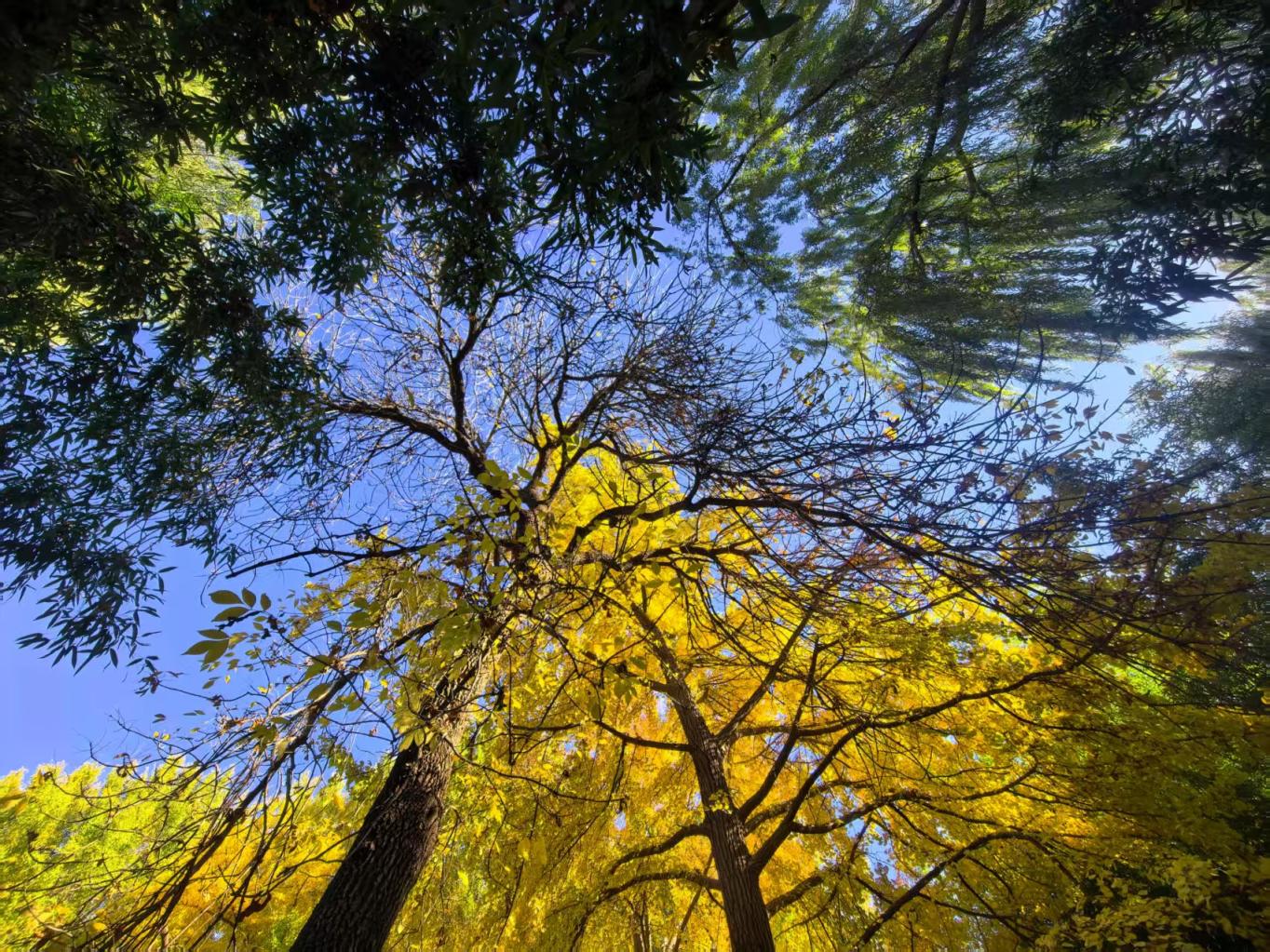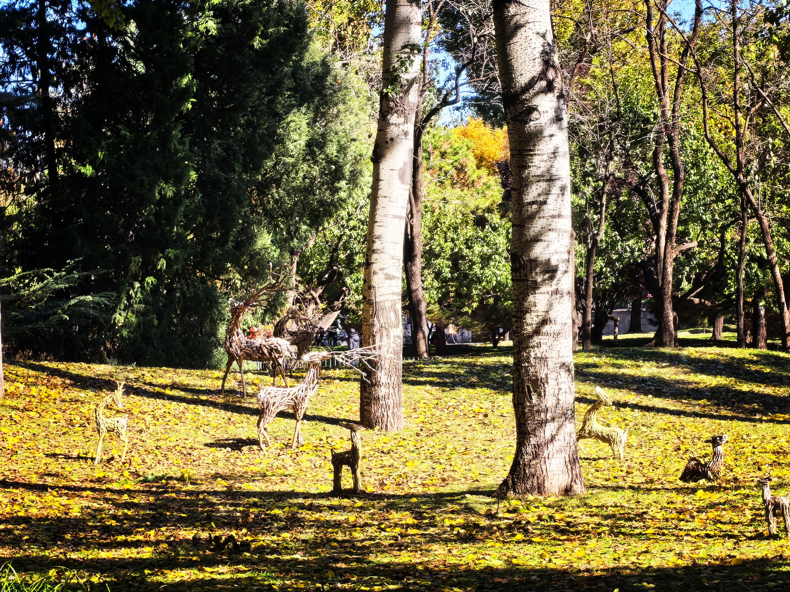 北京动物园西园,金色的树叶铺满地面。