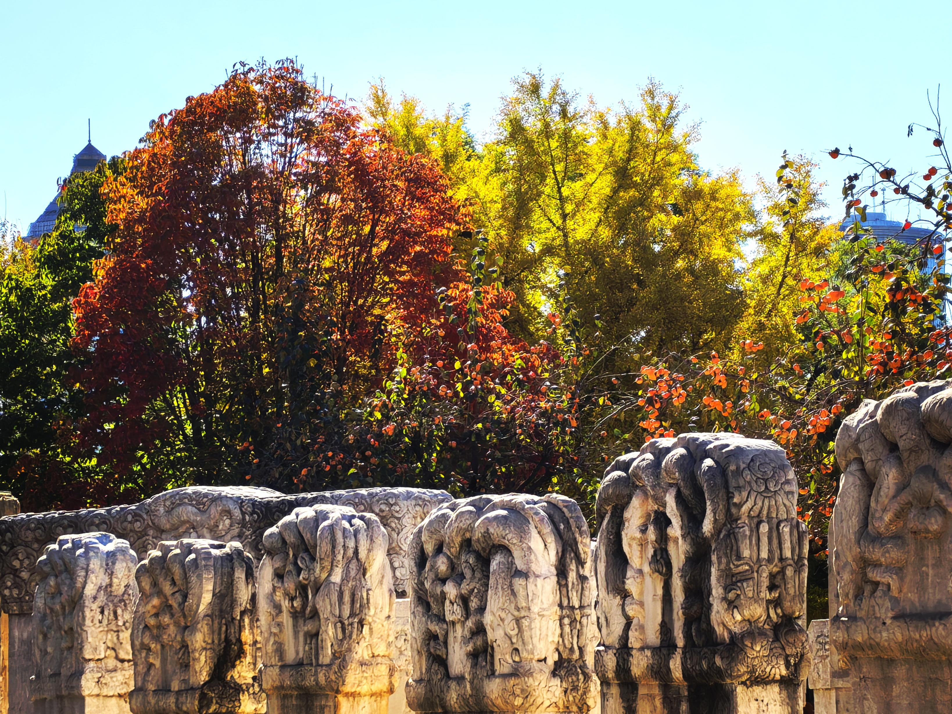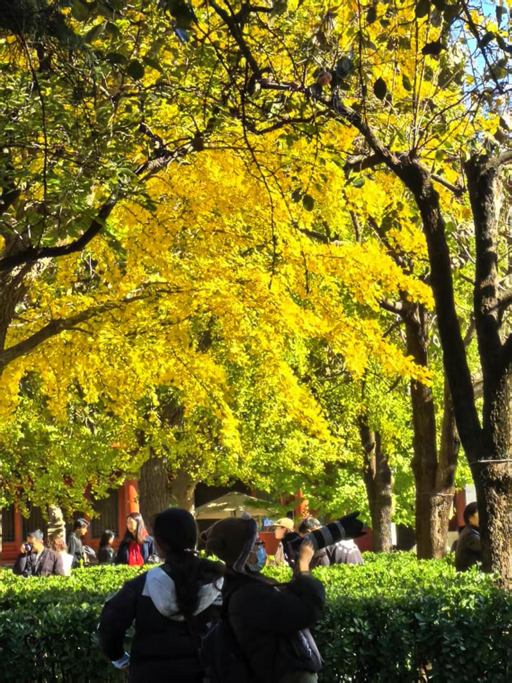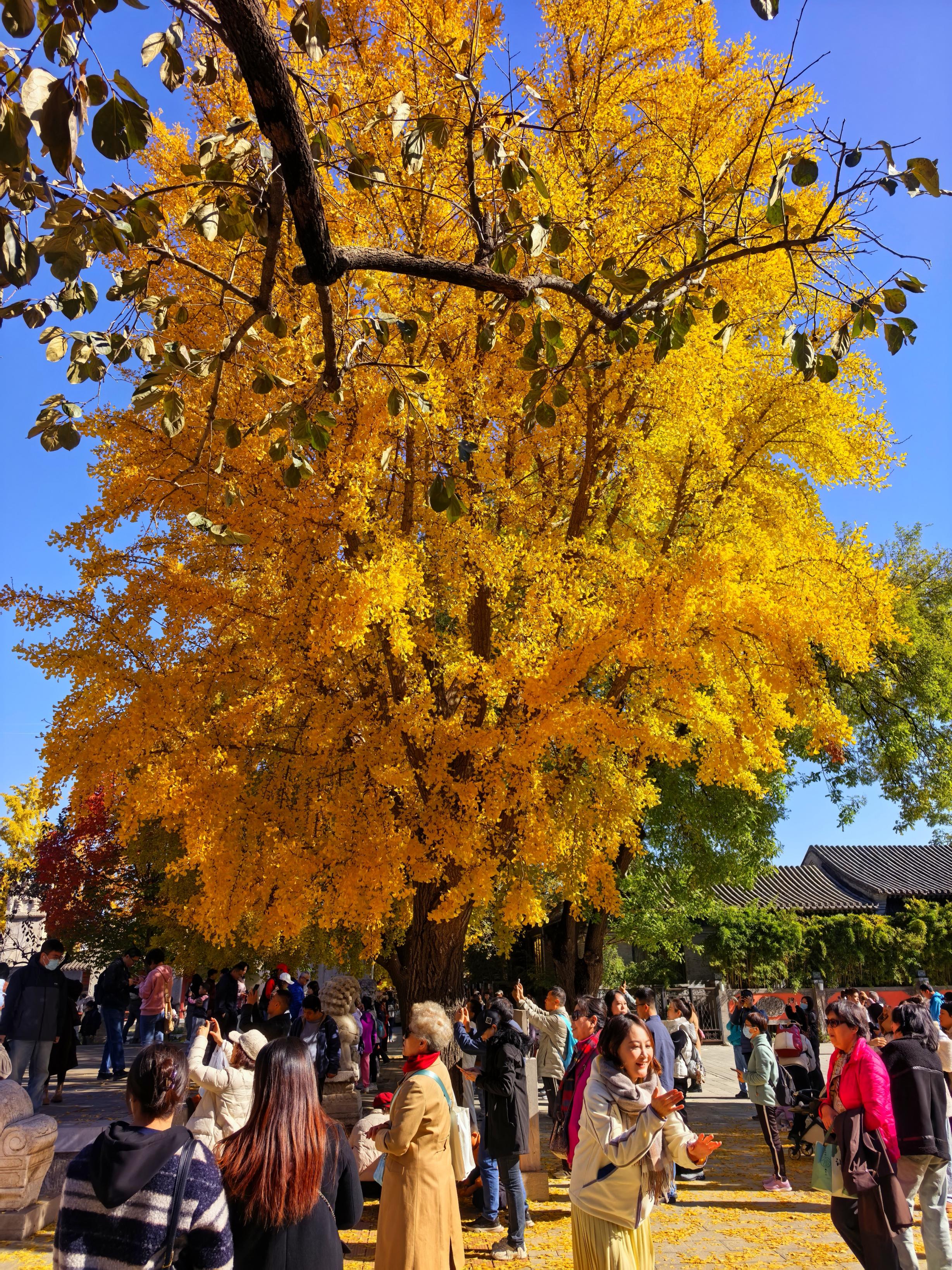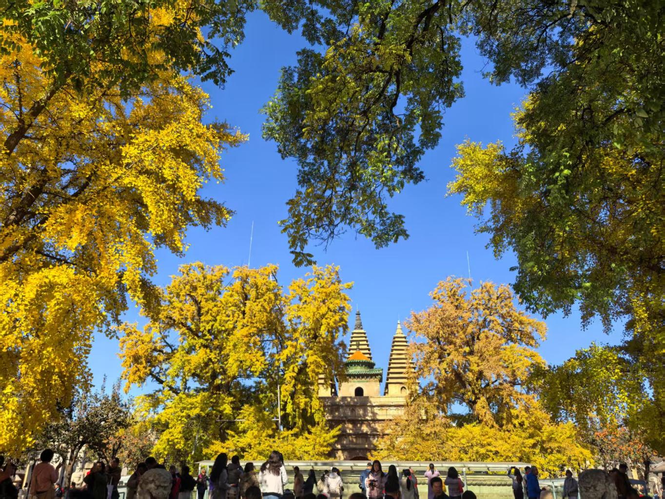 北京五塔寺,赏秋游东说念主如织。