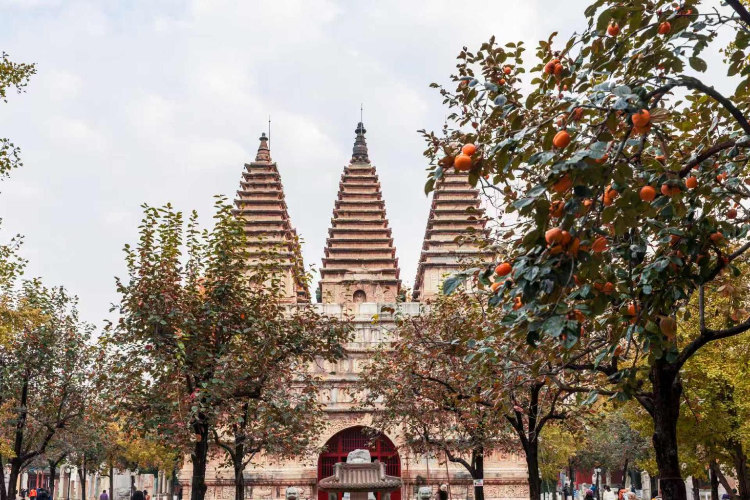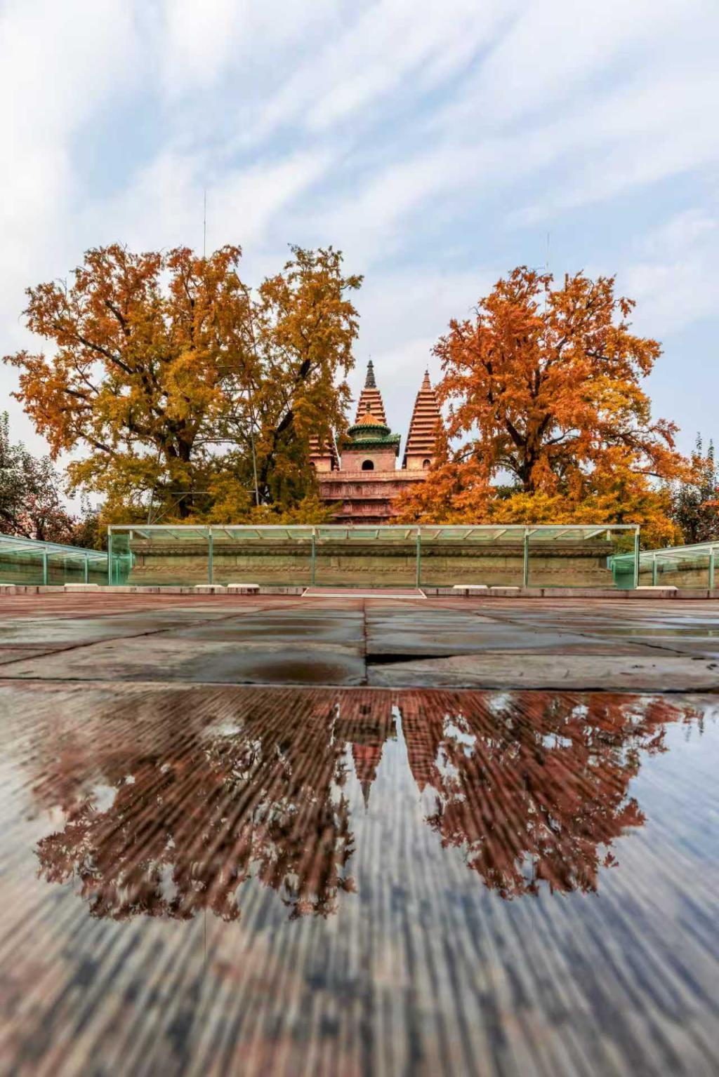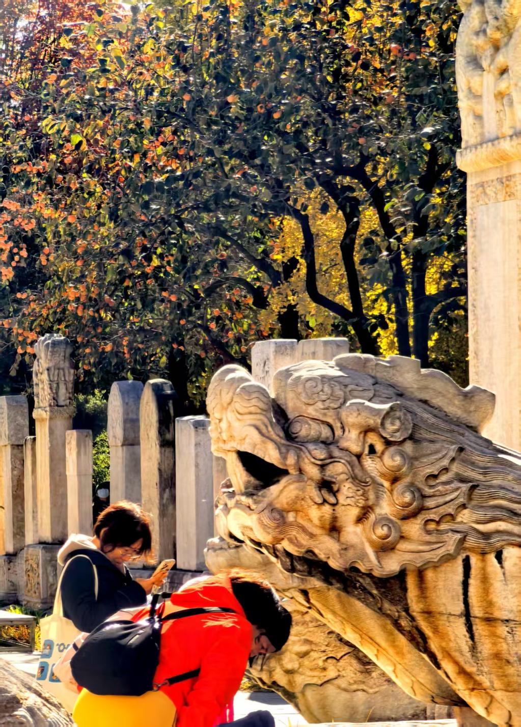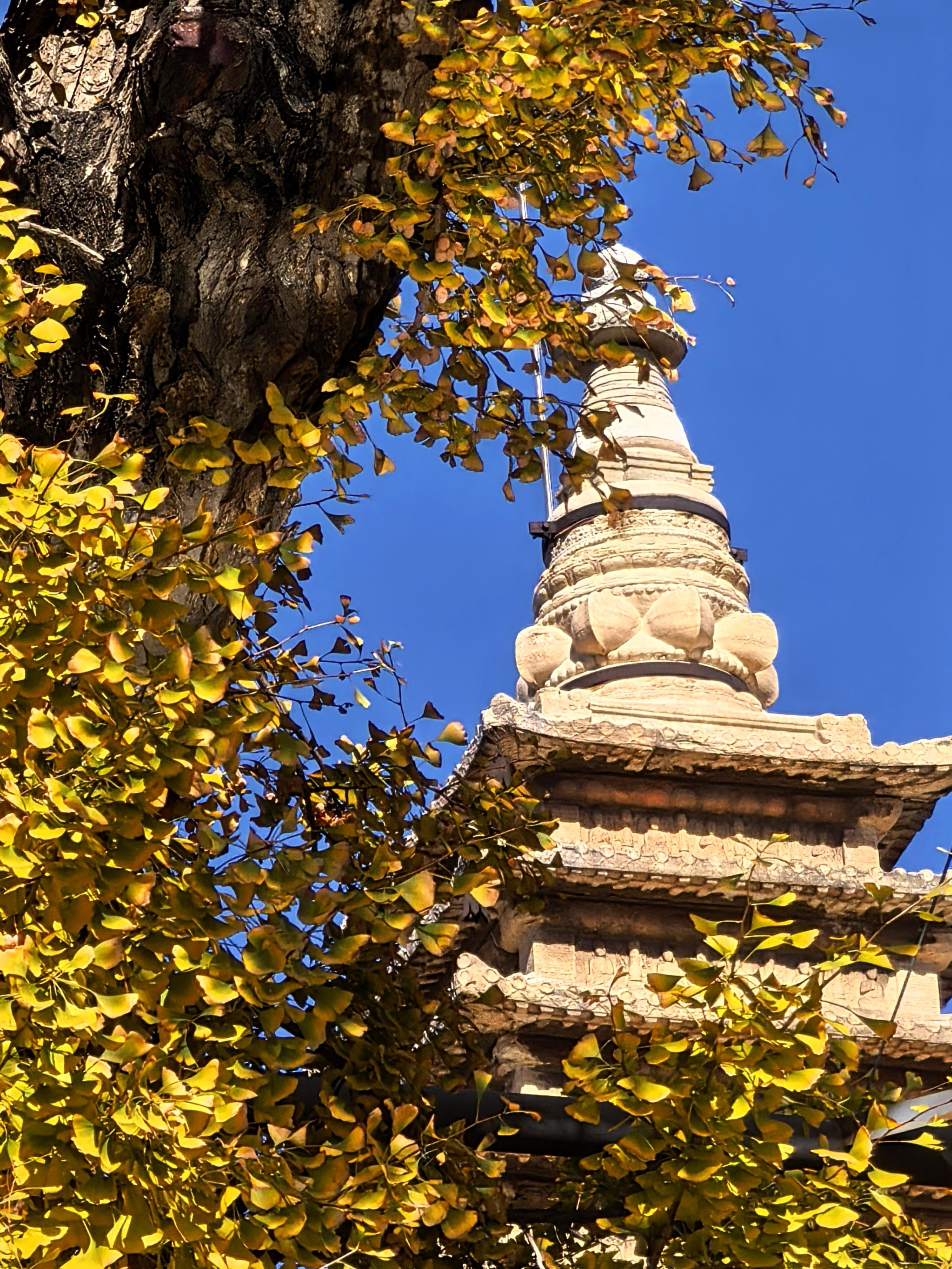 北京五塔寺,赏秋游东说念主如织。