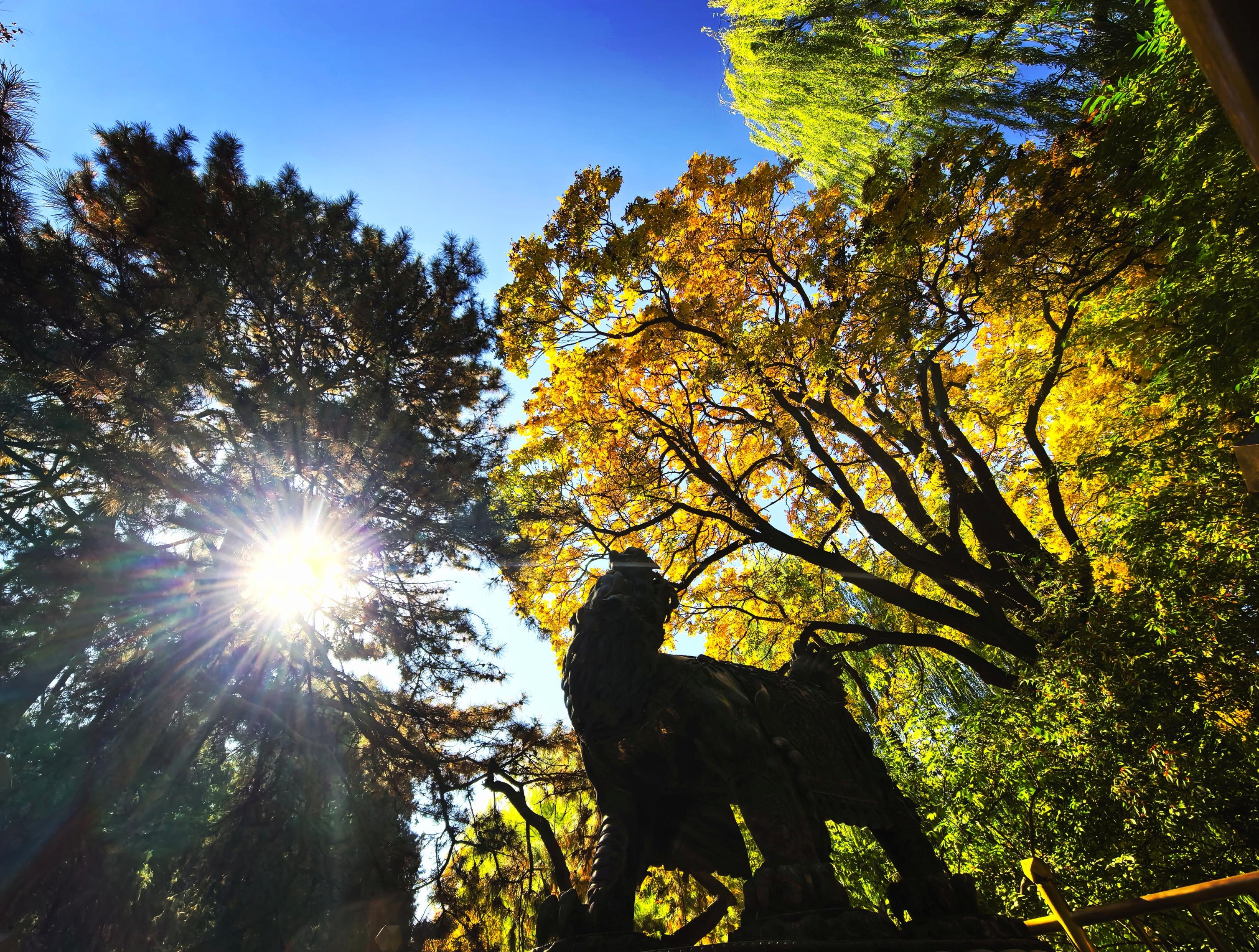 周末的北京,秋高气爽,万里无云,市民们纷繁选拔走落发中,到公园赏玩秋景。