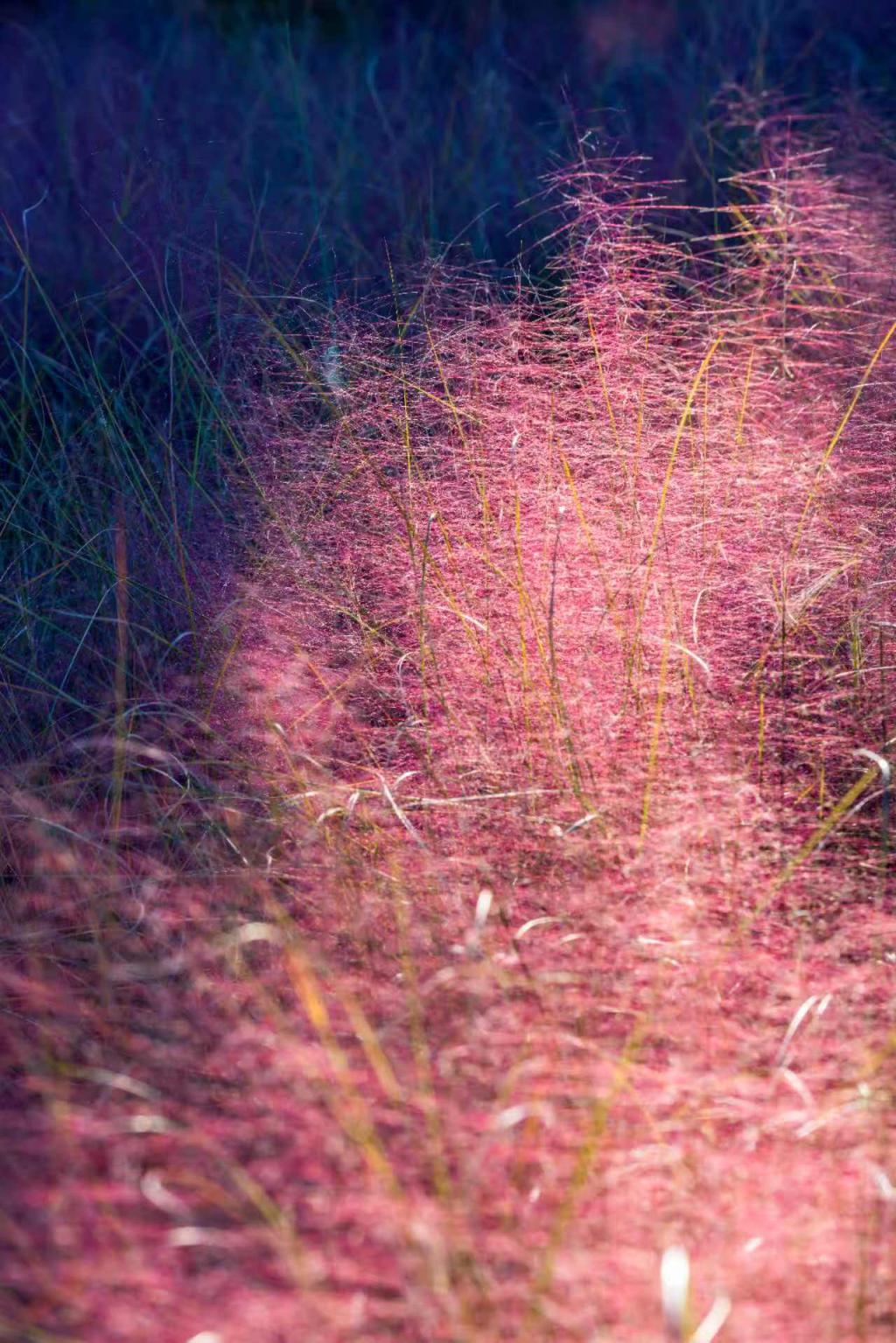 奥林匹克丛林公园北园的神树和粉黛子,在阳光的映照下闪闪发光。