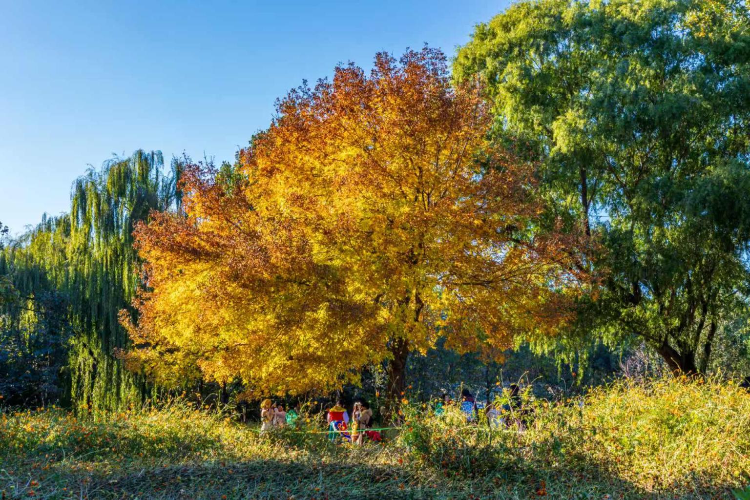 北京紫竹院金秋缤纷,游东说念主如织一语气不断。