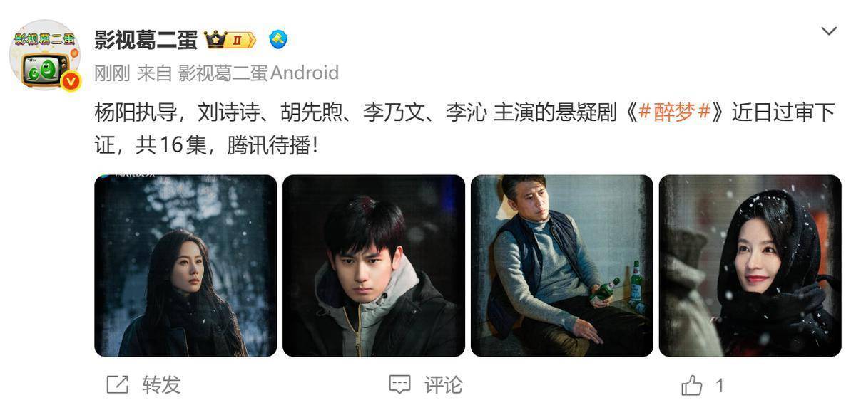 不仅如斯,脚下又有一部剧过审下证了,那便是鹅厂的悬疑剧《醉梦》,主演威望强悍,创作班底也不俗,看来是野心掀翻一波悬疑潮了。