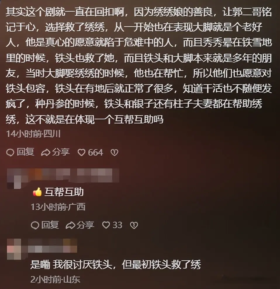 不啻绣绣和大脚在匡助别东谈主,其实环球也有帮他们种地、找东谈主,贯彻弥远地过好小日子。