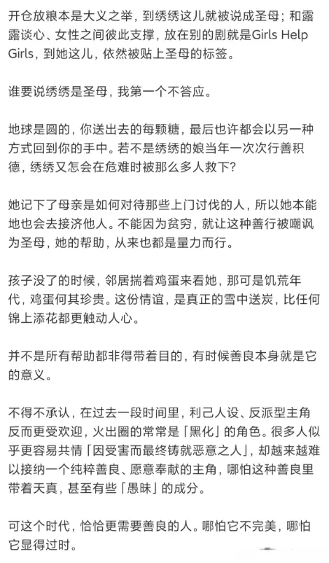 而对于不雅众们批判的“圣母”行径,其实更是《生万物》展现出的中国东谈主温良的脾气特色。