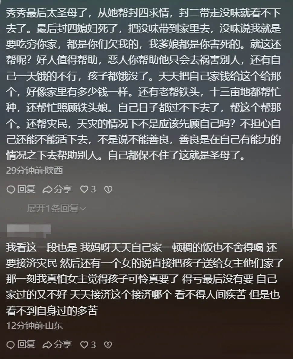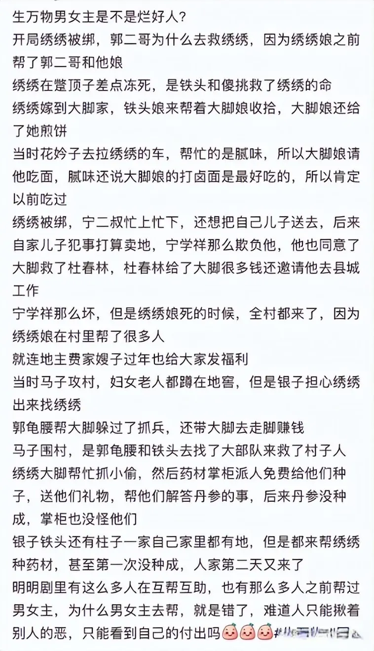固然宁绣绣和封大脚一直在匡助别东谈主,各式送钱行为让不雅众看不下去。