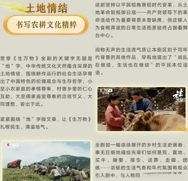 《生万物》行为一部农村剧,故事的干线剧情一直是对于地盘、对于耕作的。