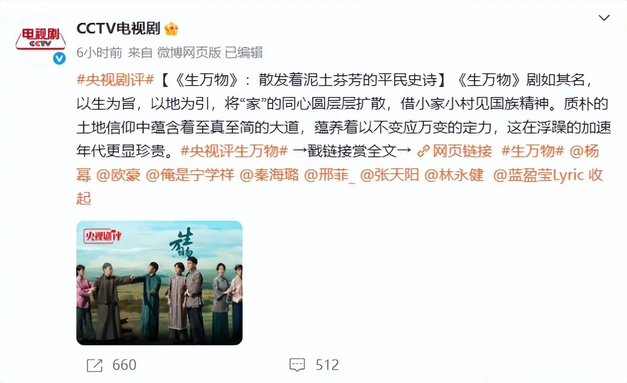 那么,有了央视的发声之后,你以为《生万物》的口碑高开低走了吗?
