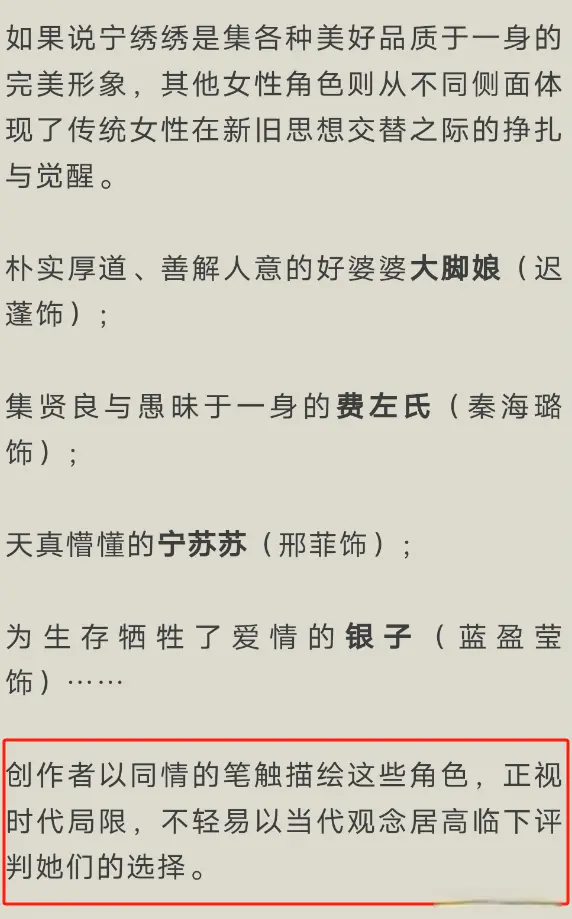 因为这样过度谦和的行径,不雅众们对于宁绣绣和封大脚的“吐槽”那是一波又一波。