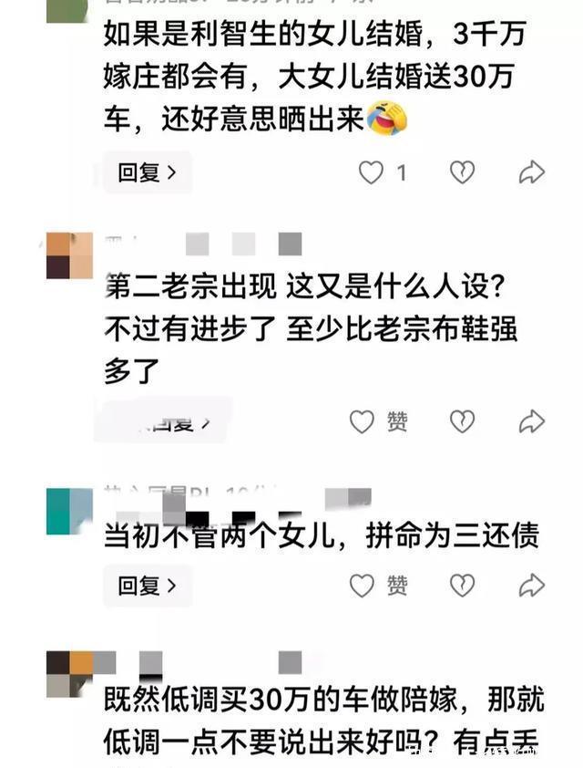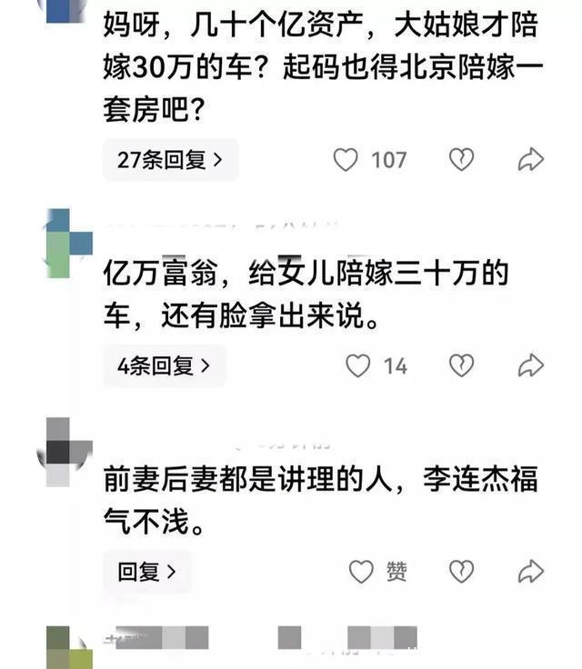 批驳区里好多网友王人在吐槽李连杰,给女儿的新婚典物太少了, 说他孤寒、丢份儿。 还有网友胜仗将李连杰曩昔抛妻弃女、为利智偿还巨额债务的旧事翻出来,还说若是李连杰嫁的是利智的女儿,一定会给更多的陪嫁。