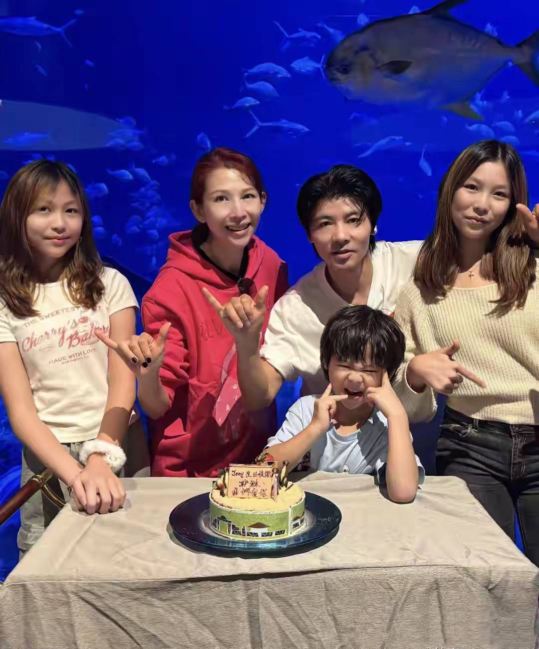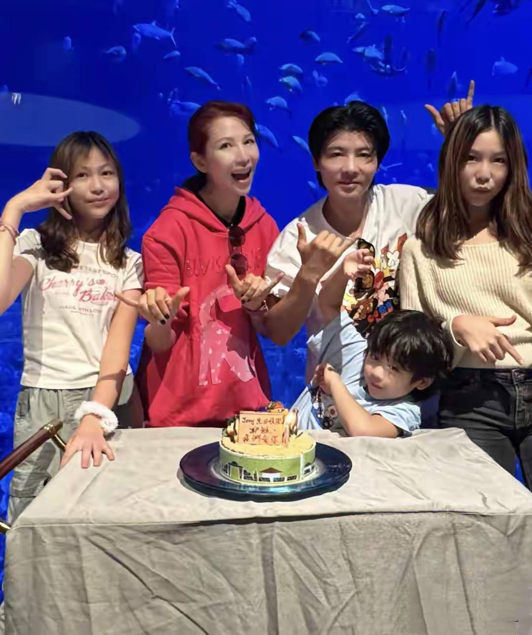 游玩为止后,就过问到亲生经过了。一家五口在一王人拍像片,就连寿辰蛋糕都特别道理。6岁的鱼蛋站在爸爸姆妈中间,弯着身子充满了童趣。