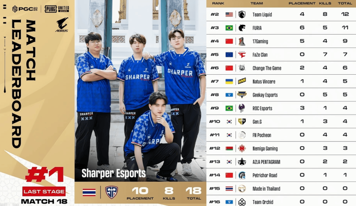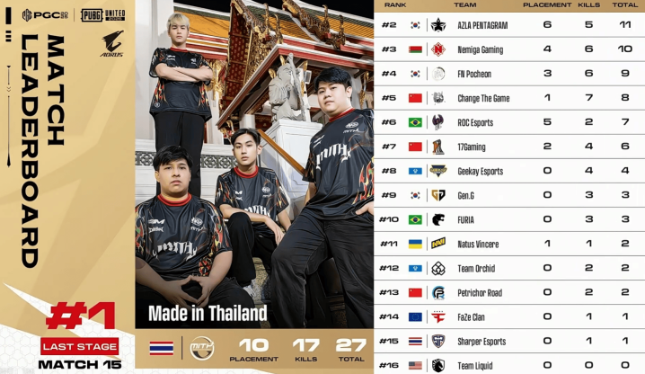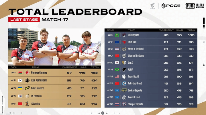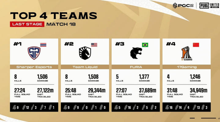 阶段7剩余7队,GEN领先出局。CTG被TL淘汰,随后17摸上山头,ROC此时被SP淘汰,17手雷淘汰TL。