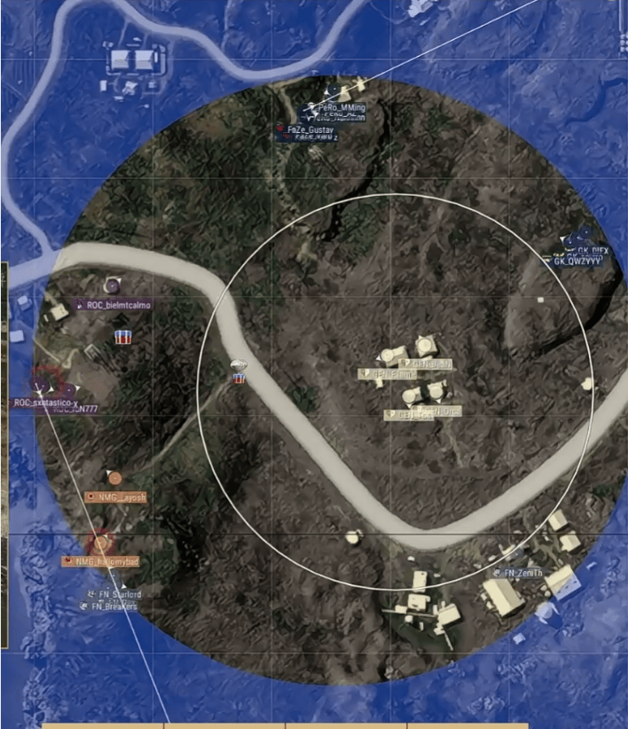 梅花桩,PeRo蓝圈外被淘汰,FN被GEN炸倒三东谈主后终末一东谈主蓝圈外淘汰,GEN天命房区吃鸡。