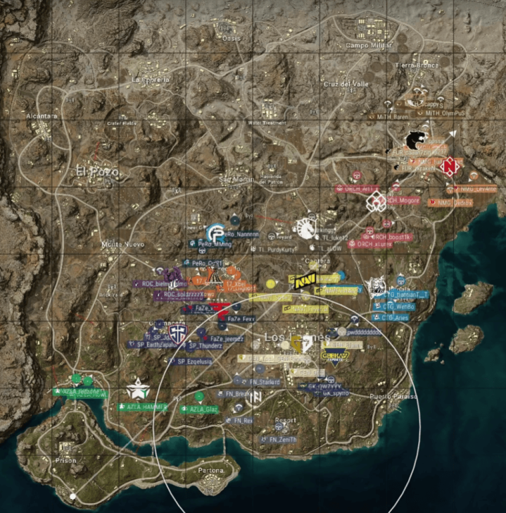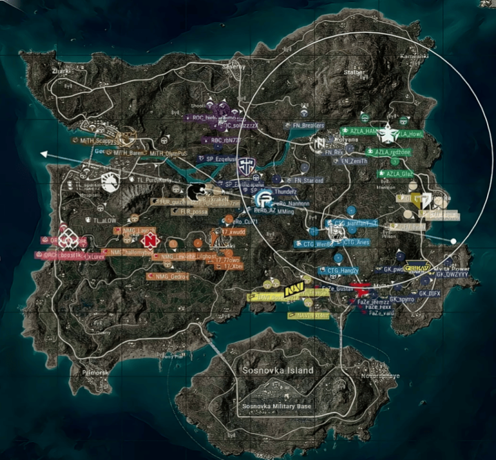 阶段6剩余9队,PeRo打掉FAZE,随后PeRo进圈被打掉2东谈主,TL独狼也被PeRo打掉,随后NMG、PeRo、MITH三方混战互有掉东谈主。