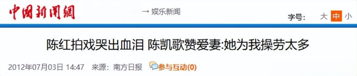 中国新闻网:陈红拍戏哭出流泪 陈凯歌赞夫妻:她为我艰苦太多