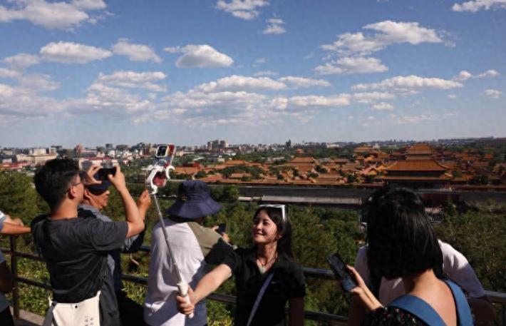 ▲旅客登北京景山南望故宫。新京报记者 李木易 摄