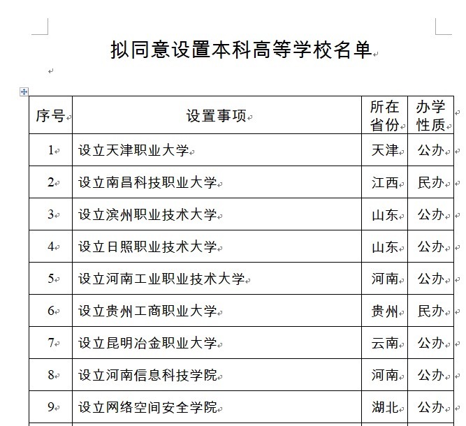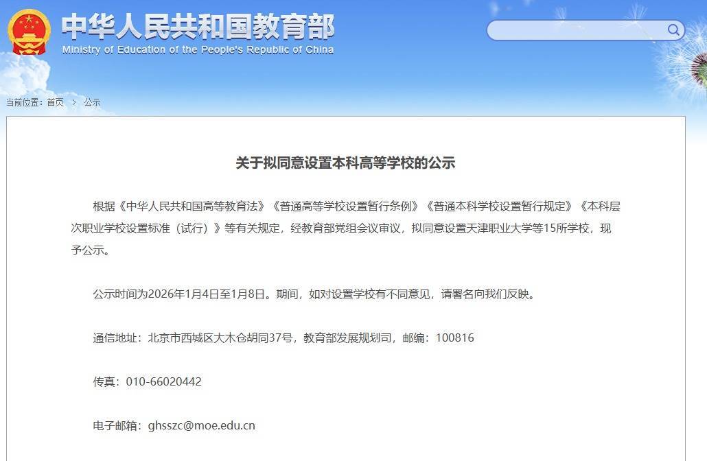 凭据《中华东谈主民共和国高级训诲法》《庸俗高级学校建树暂行条例》《庸俗本科学校建树暂行次序》《本科端倪干事学校建树圭臬(试行)》等相干次序,经训诲部党组会议审议,拟欢跃建树天津干事大学等15所学校,现予公示。